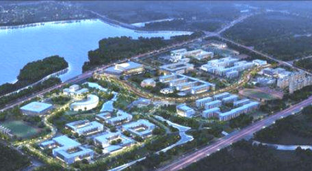 項目建設:本項目建于河北省武安市洺湖南岸,凈用地509.37畝,項目成后可容納學生約8000人,教職工510人,總建筑面積為237706.12平方米