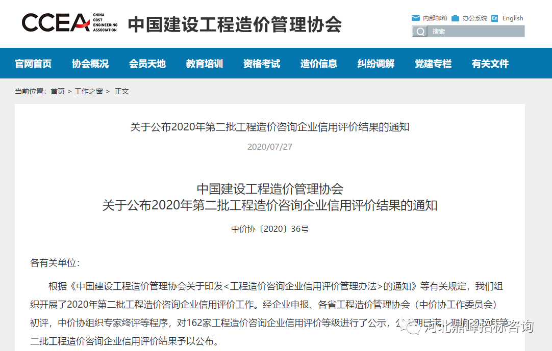 “2020年第二批工程造價咨詢企業(yè)信用評價”由中國建設工程造價管理協(xié)會發(fā)起,旨在加快推進工程造價咨詢行業(yè)信用體系建設。