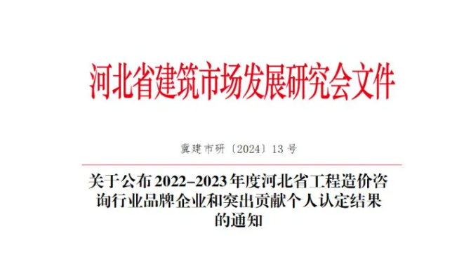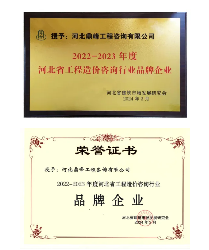 近日,河北省建筑市場發(fā)展研究會(huì)發(fā)布了《關(guān)于公布2022-2023年度河北省工程造價(jià)咨詢行業(yè)品牌企業(yè)和突出貢獻(xiàn)個(gè)人認(rèn)定結(jié)果的公示》,河北鼎峰榮獲信息化管理造價(jià)大數(shù)據(jù)應(yīng)用研究“2022-2023年度河北省工程造價(jià)咨詢行業(yè)品牌企業(yè)”。