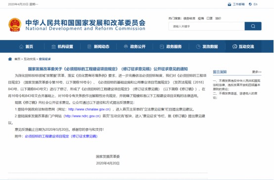 國家發(fā)展改革委關(guān)于《必須招標(biāo)的工程建設(shè)項(xiàng)目規(guī)定》(修訂征求意見稿)公開征求意見的通知