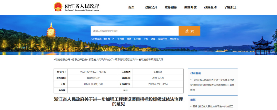 浙江省人民政府發(fā)布《關(guān)于進一步加強工程建設(shè)項目招標投標領(lǐng)域依法治理的意見》,《意見》明確禁止抽簽、搖號確定中標人等諸多亮點,自2021年4月10日起實施?!兑庖姟吩谡阏l(fā)〔2014〕39號文基礎(chǔ)上保留6條,刪除9條,修改20條,保留和修改條款經(jīng)歸并后為21條,新增條款18條,共計39條。